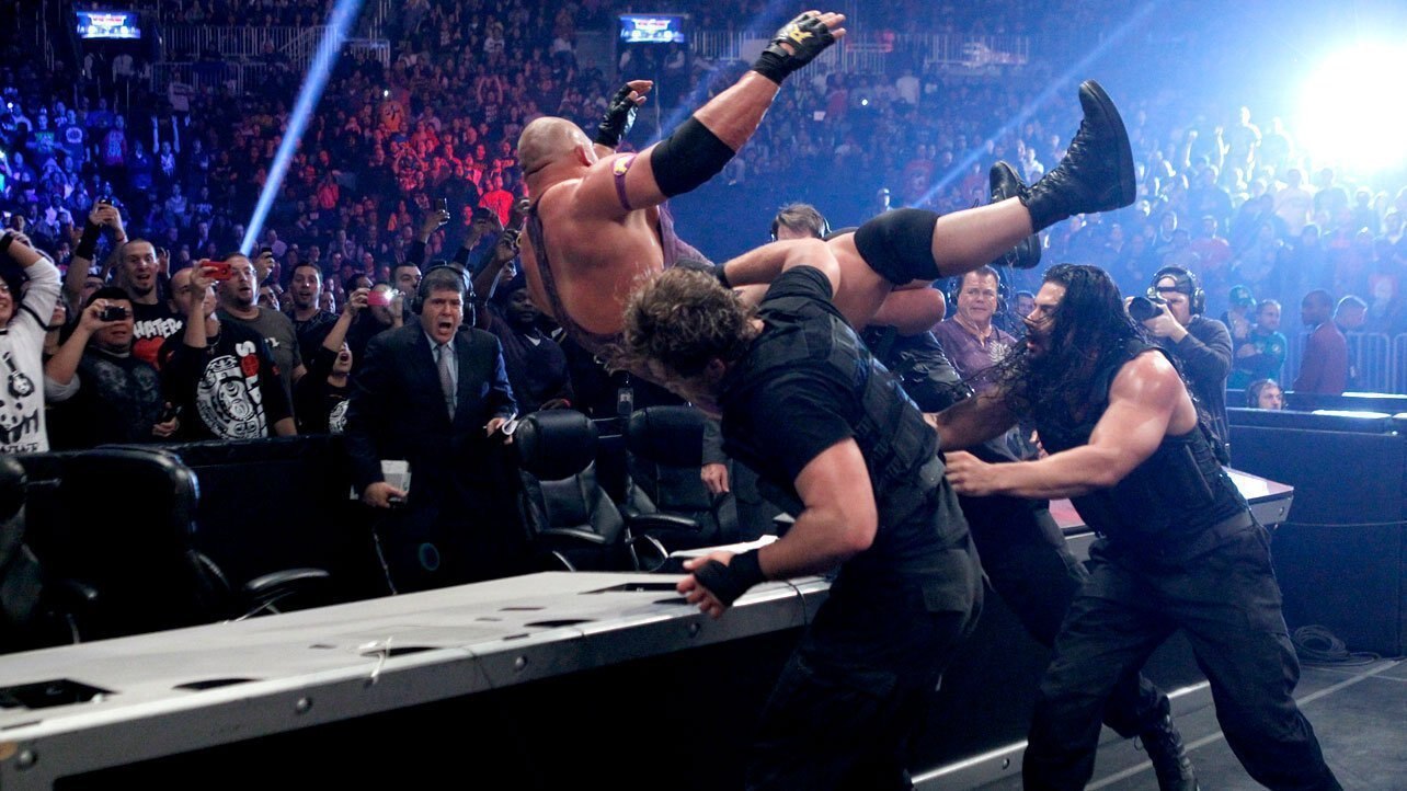 Seth Rollins, Dean Ambrose and Roman Reigns battled Ryback and Team Hell No in a match booked at the last minute following a serious knee injury suffered by then-WWE champion CM Punk.